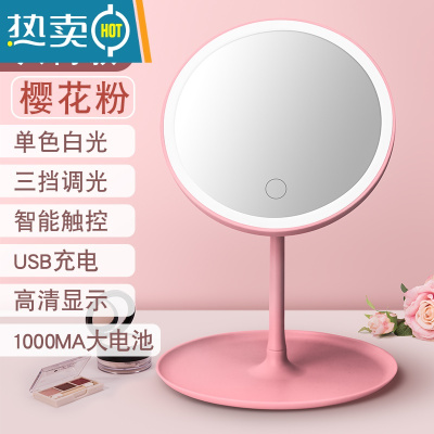 敬平led化妆镜带灯台式网红女补光小镜子ins风宿舍桌面便携小型梳妆镜 樱花粉[入门款单色三挡调光]1000M便携式用镜