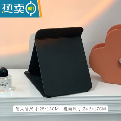 敬平复古皮质台式镜子桌面办公室小折叠化妆镜学生宿舍梳妆镜随身便携 特大号黑色便携式用镜