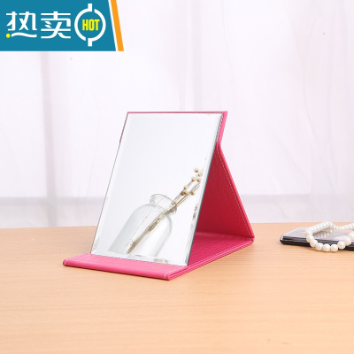 敬平高清折叠镜子化妆镜台式便携随身学生宿舍公主大号PU皮桌面梳妆镜 升级款玫红色小号 镜面加大加厚便携式用镜