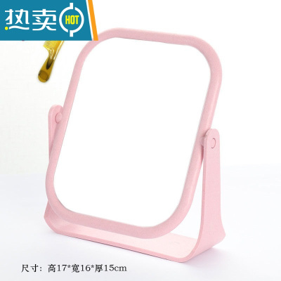 敬平镜子化妆镜双面旋转台式便携随身高清学生宿舍桌面梳妆镜女大号便携式用镜 粉色方形款无赠品