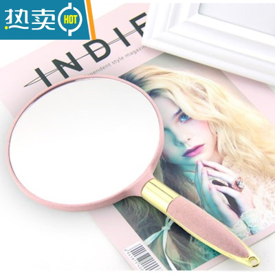 敬平美容院专用手持小镜子便携欧式圆镜方镜单面纹绣化妆镜高清镜带柄便携式用镜 圆形—粉色_h