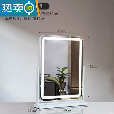 敬平新款带LED灯台式化妆镜桌面梳妆台网红美妆镜家用宿舍大号补光镜便携式用镜 [旋转]竖款白色40*53(充电款)