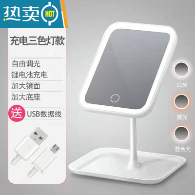敬平led化妆镜带灯台式网红女补光随身小镜子宿舍桌面折叠便携美梳垚 豪华款[三色光]1800毫安便携式用镜
