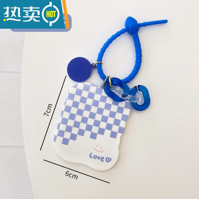 敬平原创随身镜异形卡通小镜子少女便携钥匙扣可爱创意化妆镜包包挂饰 蓝色格子便携式用镜