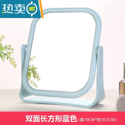 敬平双面化妆镜子台式梳妆镜子公主镜折叠便携大号网红随身宿舍桌面镜便携式用镜 双面长方形-蓝色