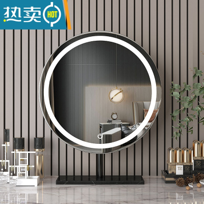 敬平简约台式镜子化妆镜桌面led镜梳妆台带灯家用卧室网红补光梳妆镜便携式用镜 黑色边框黑色大理石底座 固定款 35x35