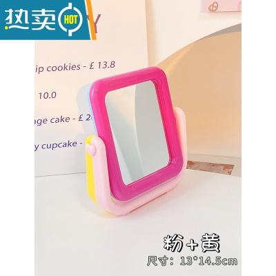 敬平镜子化妆镜学生宿舍台式桌面梳妆镜ins风便携随身镜马卡龙双面镜 玫粉马卡龙镜子(粉+黄)便携式用镜