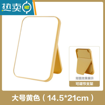 敬平化妆镜女台式桌面可立高清梳妆镜宿舍学生随身便携折叠镜子 大号黄色款[厚款]便携式用镜