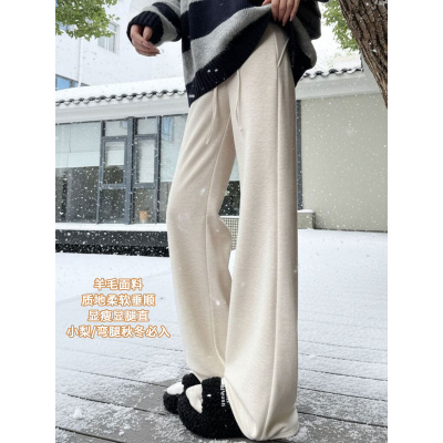 白色加绒喇叭裤子女新款冬加厚绒裤外穿羊毛呢运动微喇糯米裤