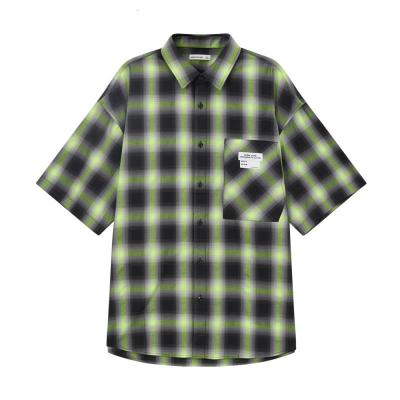 [1件5折价:99.5]美特斯邦威男渐变格子印花短袖衬衫