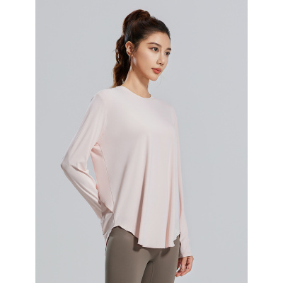 新款冰丝瑜伽罩衫圆领宽松透气百搭运动长袖T恤