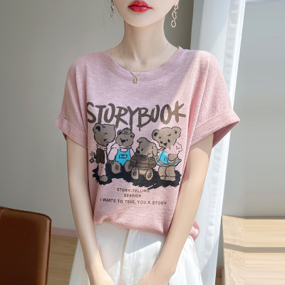 T恤女竹节麻短袖宽松韩版印花新款外穿简约内搭短袖上衣针织