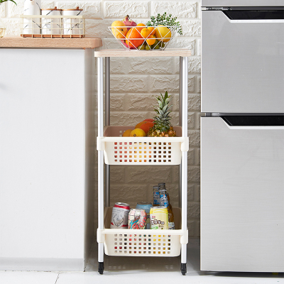 敬平厨房置物架落地多层可移动家用小推车蔬菜篮收纳储物架子用品344