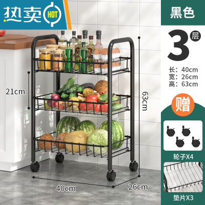 厨房置物架落地多层可移动手小推车收纳菜篮架蔬菜收纳架子 三维工匠