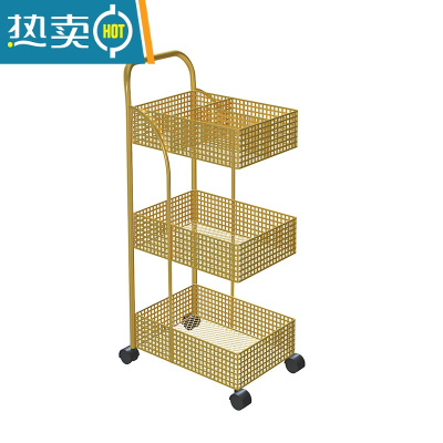 敬平北欧铁艺置物架卧室厨房金属可移动浴室收纳架带轮小推车金色落地