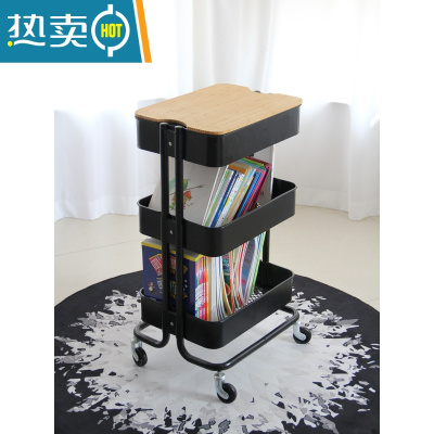 敬平双层落地置物架ins床头柜收纳宿舍器卧室化妆品桌下移动小推车
