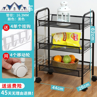 厨房网篮小推车置物架带轮子可移动放水果蔬菜收纳筐家用落地多层 三维工匠