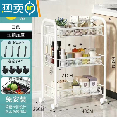 敬平厨房夹缝置物架窄冰箱收纳柜微波炉调料品落地多层铁艺移动小推车