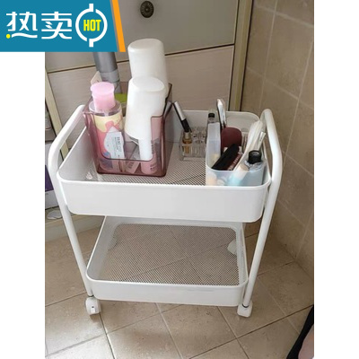 敬平两层金属小推车置物架落地客厅移动零食手推车卧室收纳桌下储物架