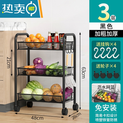 蔬菜架厨房置物架水果菜篮移动收纳架分层架落地整理储物架小推车 三维工匠