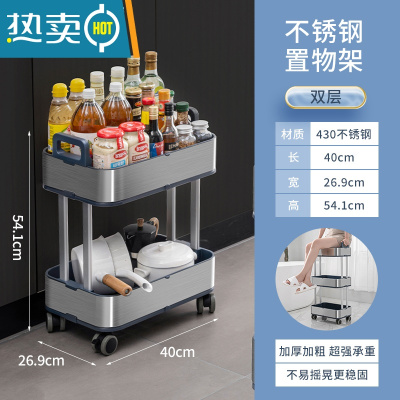 敬平厨房收纳置物架落地多层小推车不锈钢菜篮字储物架带轮浴室卫生间