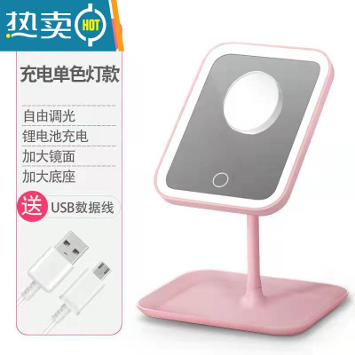 敬平led化妆镜带灯台式补光小镜子ins风网红女宿舍桌面便携小型梳妆镜 [粉色]1200ma支架+梳子(+收便携式用镜