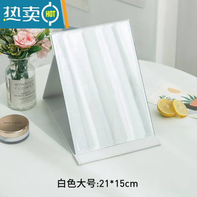 敬平化妆镜子台式梳妆镜子公主镜折叠便携大号网红简约随身宿舍桌面便携式用镜 大号25*18cm白色-防水款