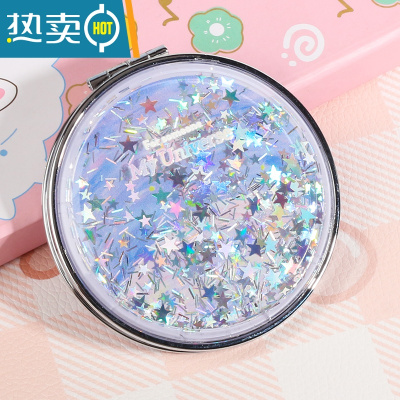 敬平芙芙狗可爱梦幻流沙小镜子随身镜少女心双面化妆镜便携小号折叠 银河幻境-A便携式用镜