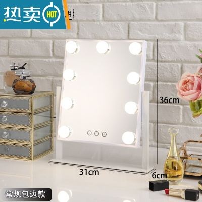 敬平大号化妆镜台式led灯化妆镜带灯家用卧室梳妆镜桌面宿舍便携镜子 9灯白色框面3色光+无极调光(充电款)便携式用镜