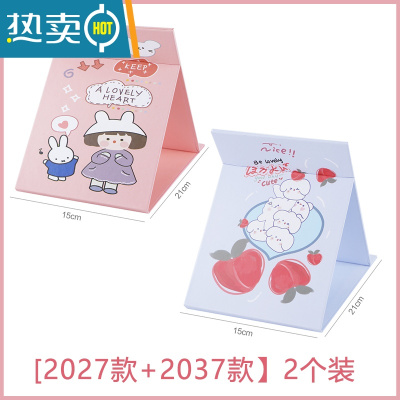 敬平台式小镜子女学生宿舍桌面可立大号折叠化妆镜便携可爱家用梳妆镜 [2027款+2037款] 2个装便携式用镜