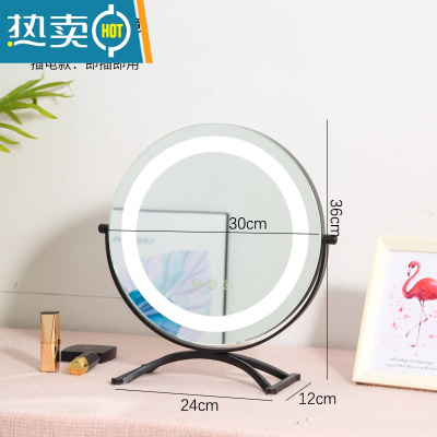 敬平化妆镜子台式led带灯补光桌面充电梳妆台大号宿舍网红少女心ins风便携式用镜 [可旋转]黑色直径30cm插电款+3色
