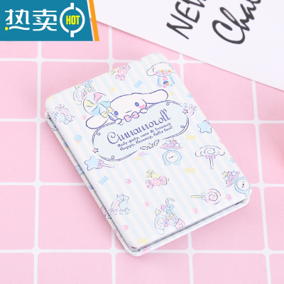 敬平镜子化妆镜便携小镜子女随身家用小型折叠台式学生宿舍桌面梳妆镜 大号-淡蓝小狗便携式用镜