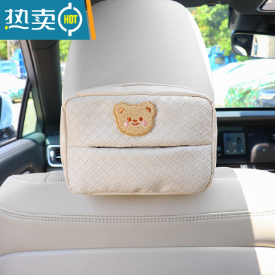 敬平车载纸巾盒挂式可爱收纳座椅纸巾包多功能扶手箱遮阳板抽纸盒装饰 呆萌小熊-白色纸巾盒