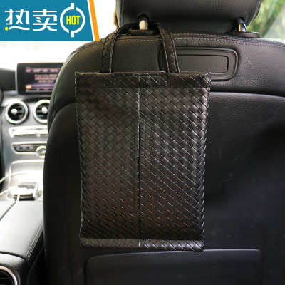 敬平车载纸巾盒车座椅背挂式创意多功能抽纸盒装饰汽车纸巾包挂袋用品 黑色编织纸巾包