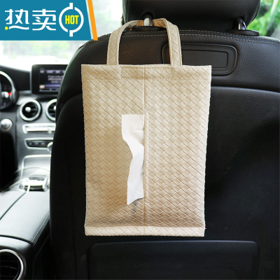 敬平车载纸巾盒车座椅背挂式创意多功能抽纸盒装饰汽车纸巾包挂袋用品 米色编织纸巾包