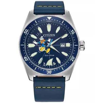 西铁城(CITIZEN)CitizenEcoDrive男士唐老鸭蓝皮表带手表42mm航海风格防水 quartz表