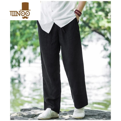 YANXU新款棉麻直筒男士休闲裤简约百搭宽松长裤潮牌高端薄款亚麻裤子