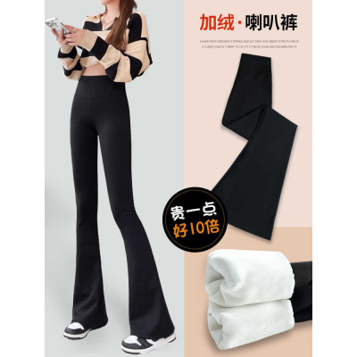 加绒微喇鲨鱼裤女外穿秋冬季加厚棉裤高腰提臀瑜伽大码喇叭打底裤