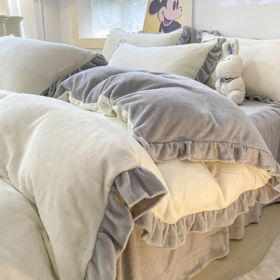 牛奶绒床上四件套冬季加厚珊瑚绒床单被罩花边法兰绒被套加绒床品