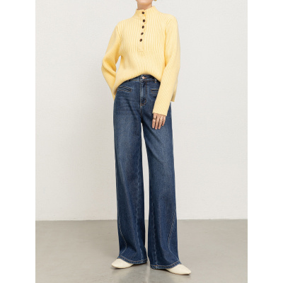 年冬季新款韩版高腰牛仔微喇裤女植绒加厚喇叭长裤