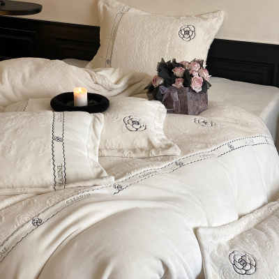 感小香风牛奶绒四件套秋冬加厚法莱绒刺绣被套床单公主风套件