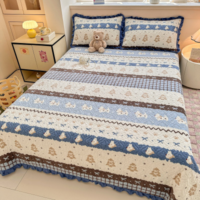 牛奶绒床盖冬季保暖珊瑚法兰绒榻榻米防滑花边加厚床单三件套炕单