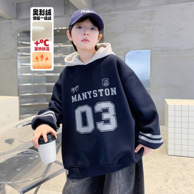 男童加绒卫衣连帽儿童冬季新款冬装男宝加厚一体绒秋冬款