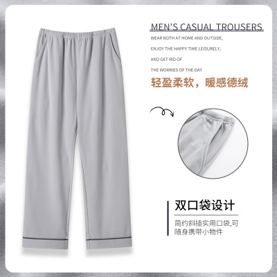 男士睡裤双面德绒磨毛秋裤加绒加厚自发热直筒休闲裤加大保暖裤