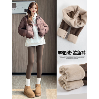 加绒加厚鲨鱼裤女外穿新款秋冬季保暖棉裤紧身显瘦咖色打底裤