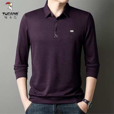 啄木鸟2025春季新款中年爸爸时尚商务休闲长袖打底上衣男士Polo衫