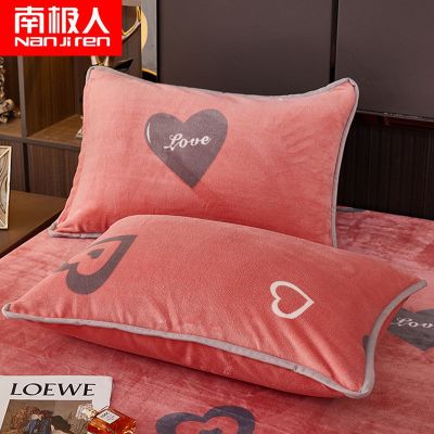 冬季枕套一对装珊瑚绒法兰绒加厚单人枕头套48x74cm