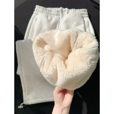 加绒运动裤女款新款秋冬季加厚东北棉裤灰色羊羔绒阔腿卫裤子