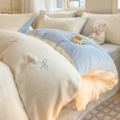 牛奶绒床上四件套法兰珊瑚绒被套新款秋冬加厚保暖床单三件套