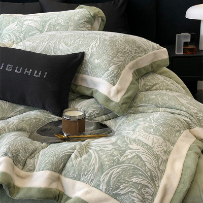 小清新高克重冬季牛奶绒床盖款四件套加厚保暖双面珊瑚绒被套床品